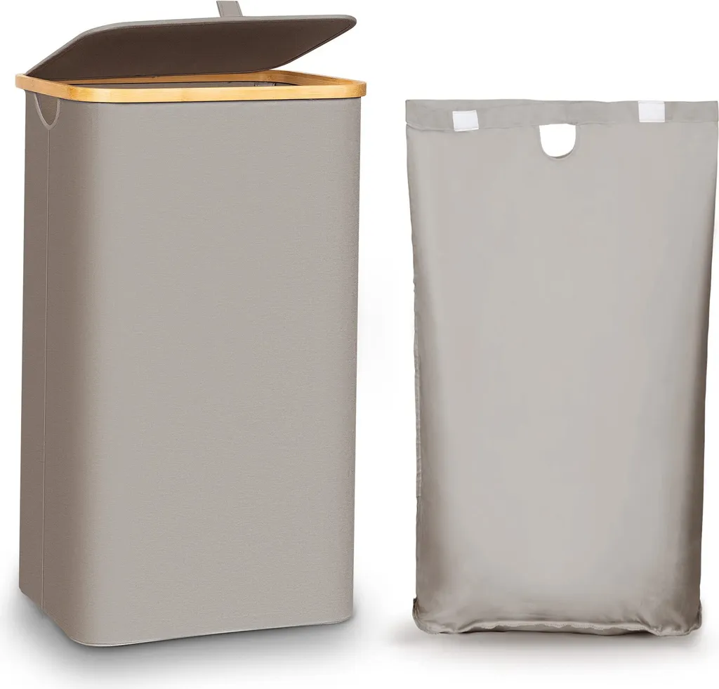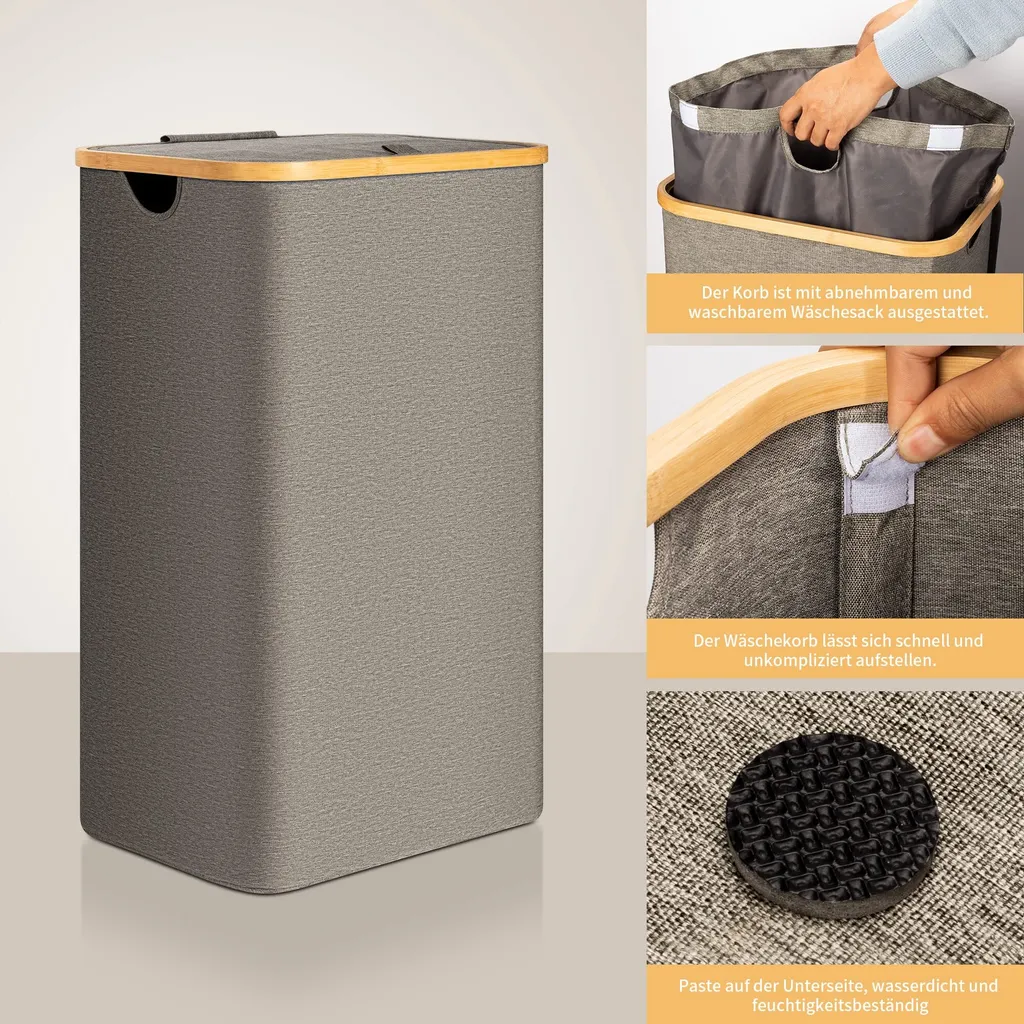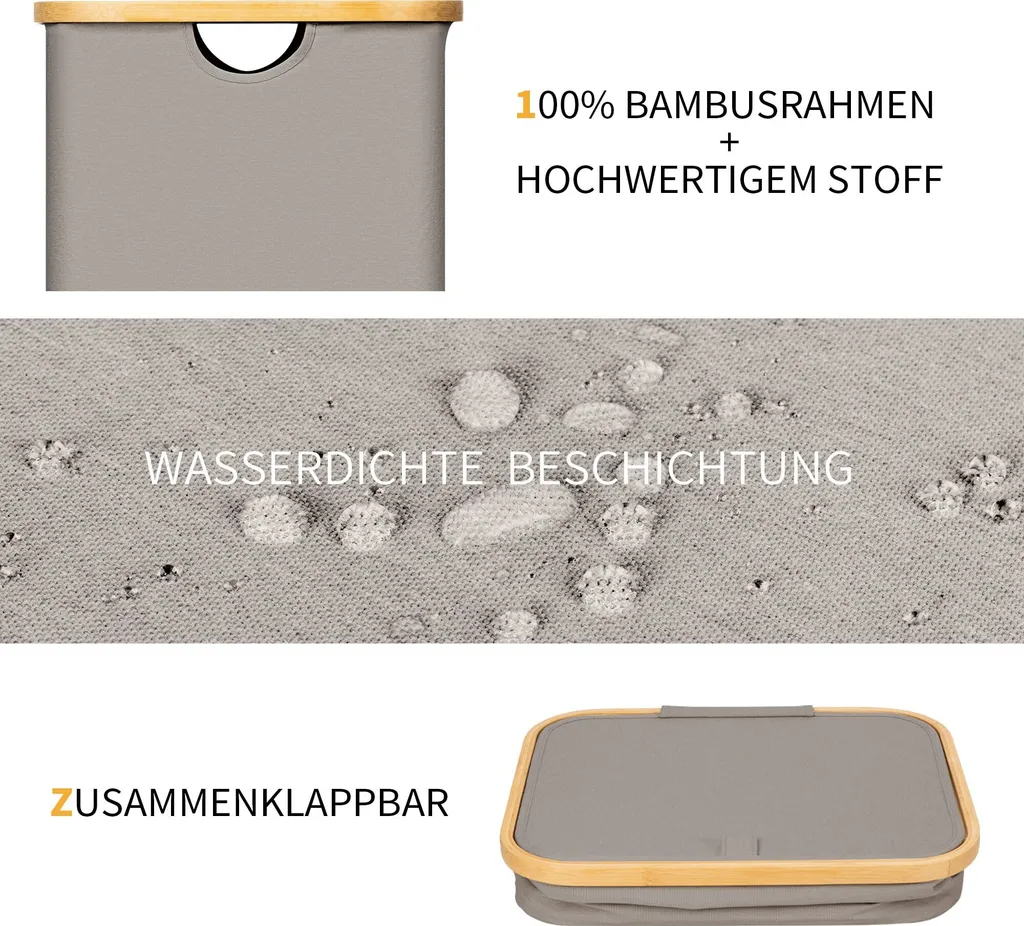 Wäschetruhe HWC-B18, Wäschebox Wäschekorb Wäschesammler, Bambus 61x50x35cm