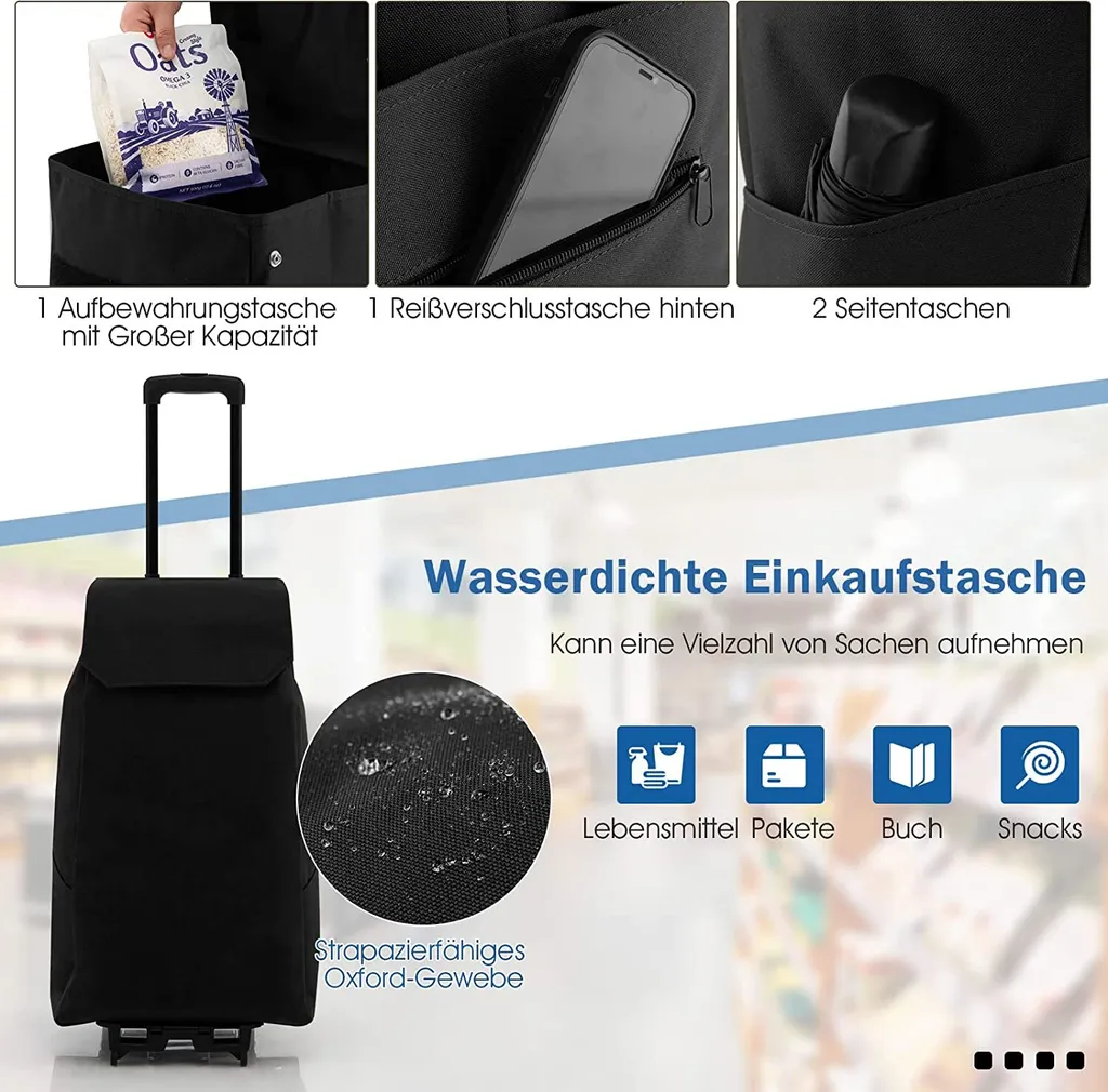 Schreibe die erste Rezension für „COSTWAY 2in1 Einkaufswagen & Trolley Mit 38L-Fassungsvermögen, 3-stufig Höhenverstellbarer Einkaufsroller Mit 2 Rädern & 2 Seitentaschen & Reißverschlusstasche, Bis 60kg Belastbar Schwarz“ Antwort abbrechen