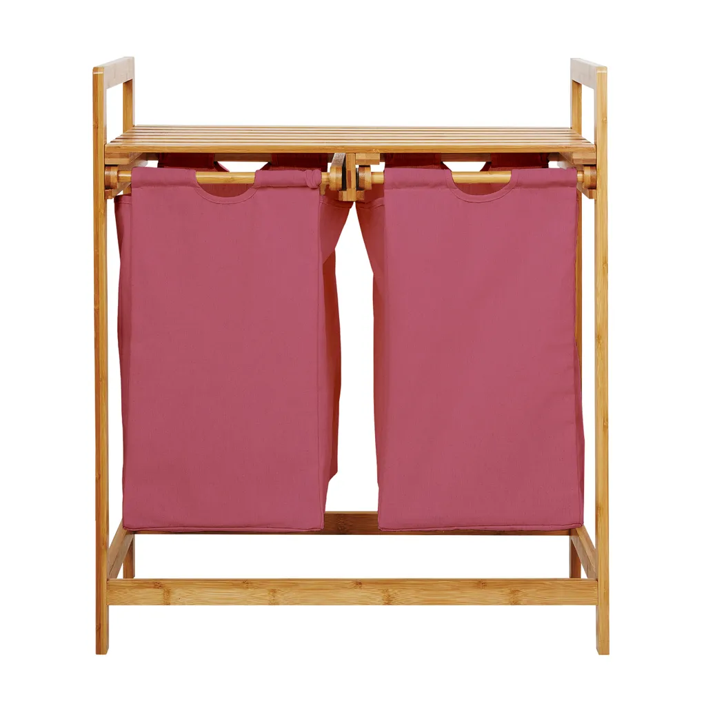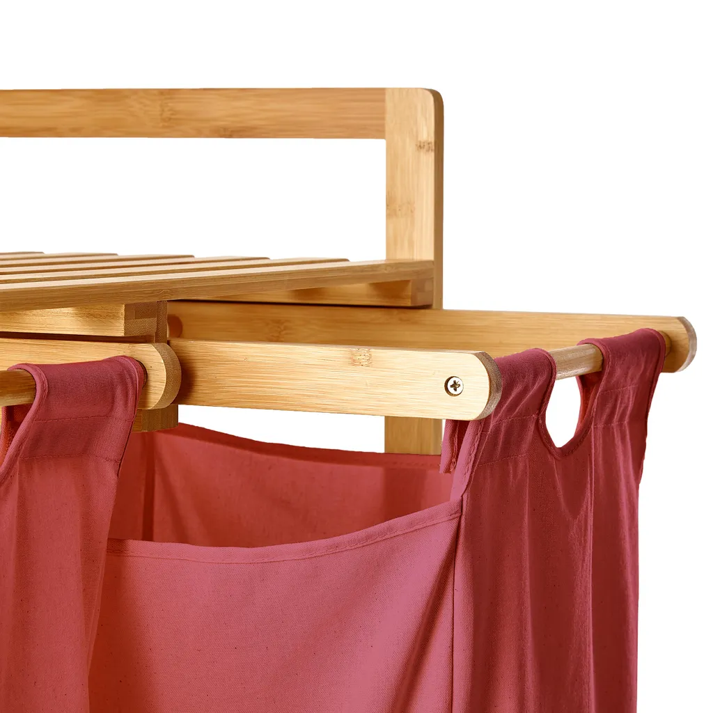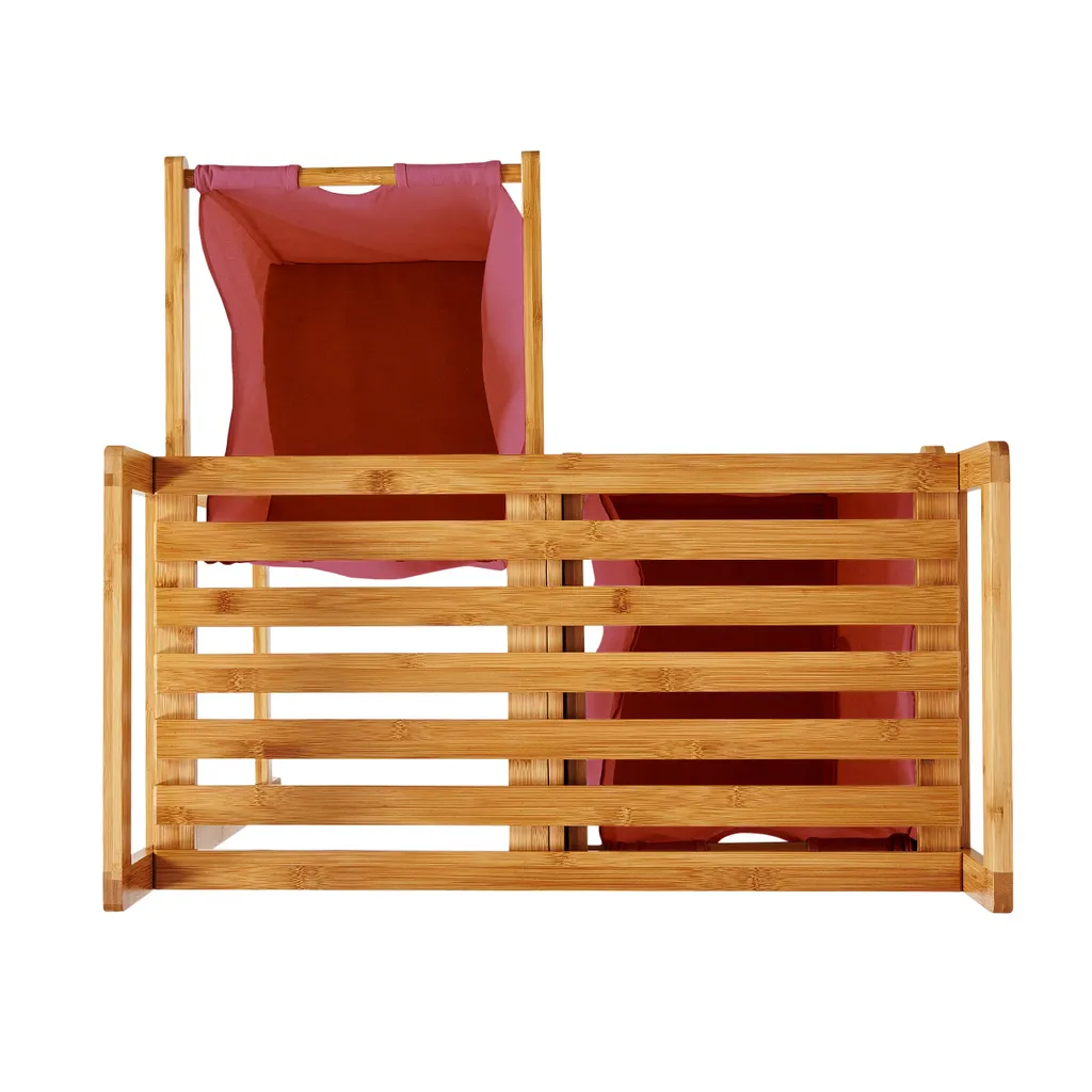 Lumaland Wäschekorb Aus Bambus, Mit 2 Ausziehbaren Wäschesäcken, Ca. 73 X 64 X 33 Cm Beige
