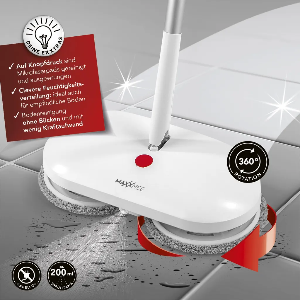 Schreibe die erste Rezension für „MAXXMEE Akku-Rotationsmopp – Rotierende Mikrofaserpads – Weiß Bodenwischer Akku Spray Mopp Spraymop Set Sprühwischer Tank Rotation Wischmopp“ Antwort abbrechen