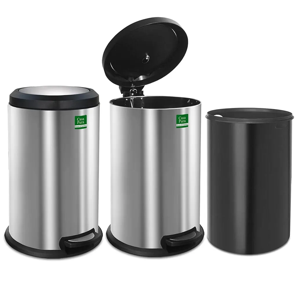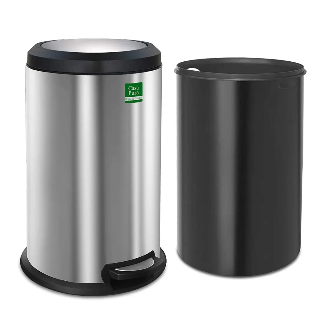 SVITA TQ30 Mülleimer Weiß 30L Treteimer Abfallbehälter Softclose Deckel Mit Inneneimer Edelstahl