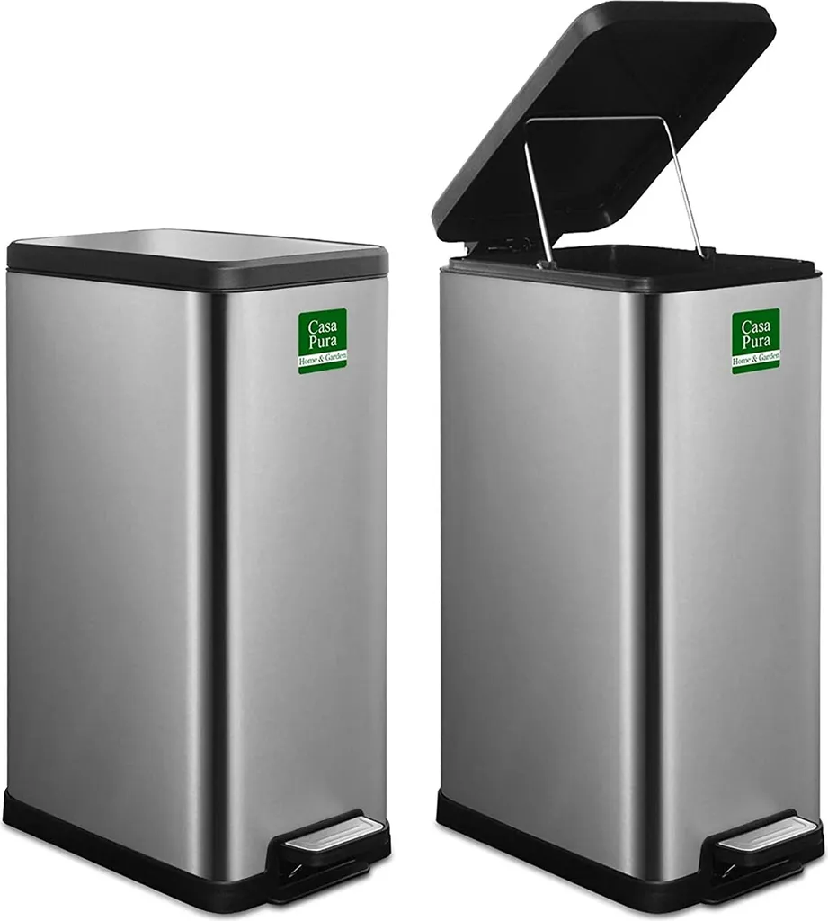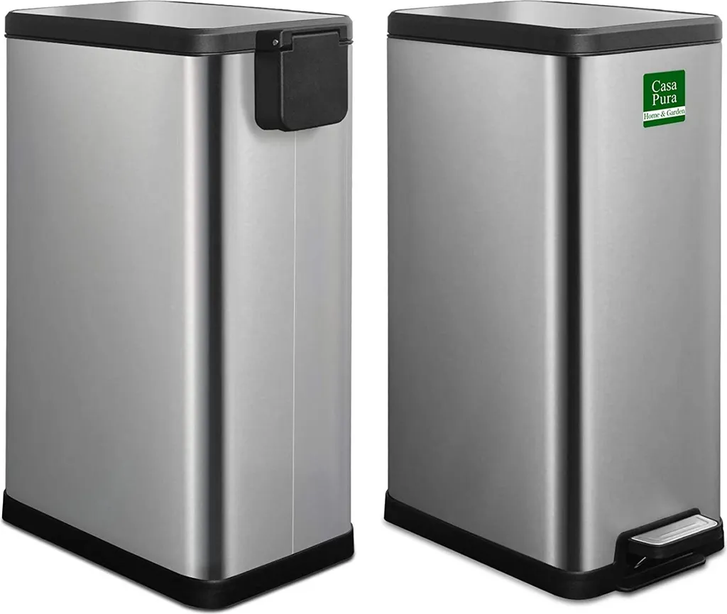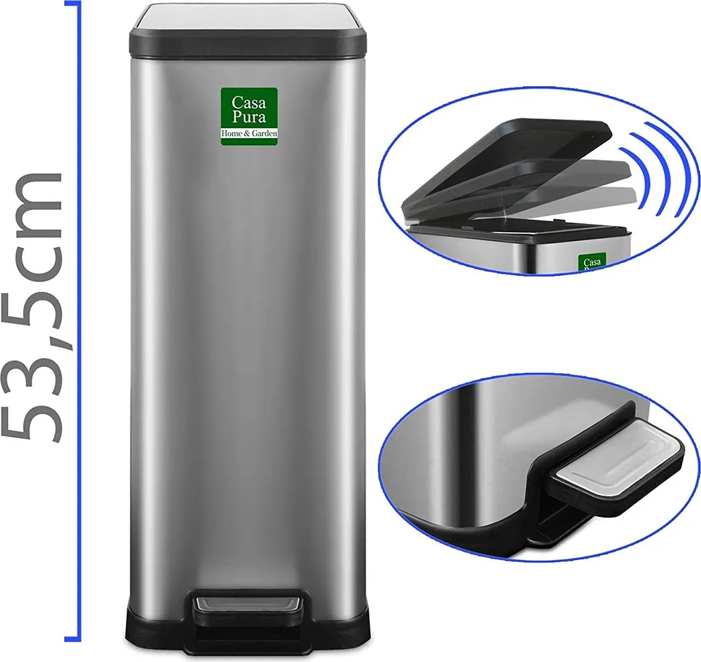 SVITA TQ30 Mülleimer Weiß 30L Treteimer Abfallbehälter Softclose Deckel Mit Inneneimer Edelstahl