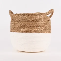 Korb Aus Seegras Zweifarbig Rund Mit Henkeln Natur Weiß Verschiedene Größen, Motiv/Größe:Mittel