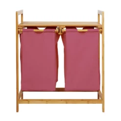 Lumaland Wäschekorb Aus Bambus, Mit 2 Wäschesäcken, 73x64x33 Cm Rosa