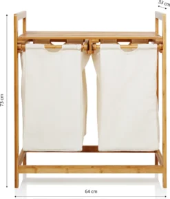 Lumaland Wäschekorb Aus Bambus, Mit 2 Ausziehbaren Wäschesäcken, Ca. 73 X 64 X 33 Cm Beige