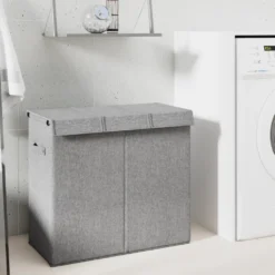 VidaXL Faltbarer Wäschekorb Grau 51×34,5×59 Cm Leinenimitat Stoff