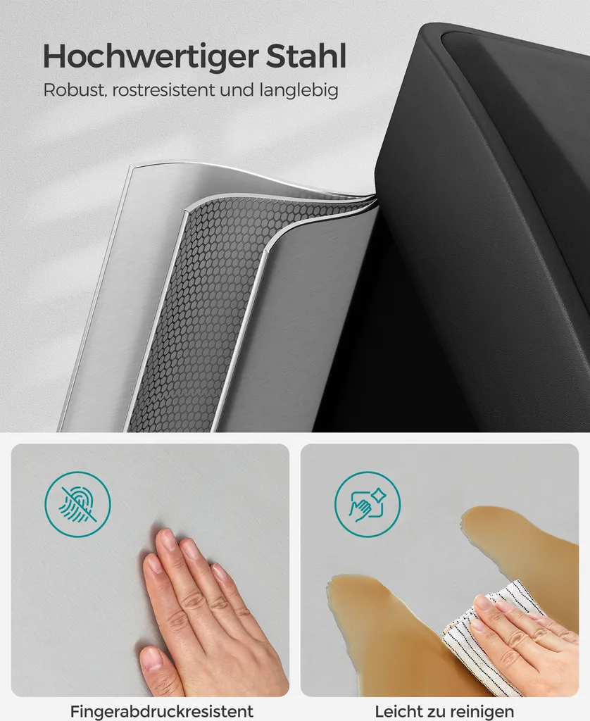 Schreibe die erste Rezension für „SONGMICS Mülleimer 24L, Edelstahl Abfalleimer Mit Inneneimer 3 X 8L 3-in-1Treteimer Trennsysteme LTB24L“ Antwort abbrechen