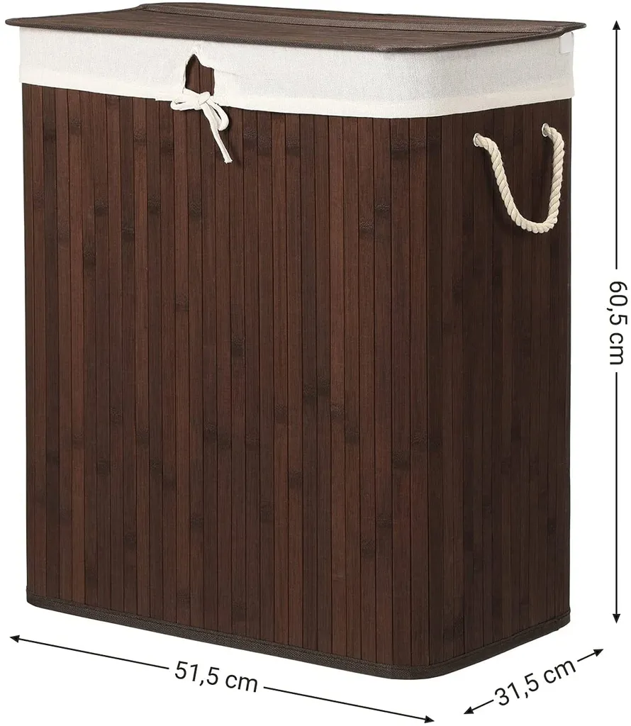 Schreibe die erste Rezension für „SONGMICS Wäschekorb Aus Bambus, Wäschesammler Mit 2 Fächern, Wäschesortierer Mit Deckel Und Herausnehmbarem Wäschesack, Tragegriffe Aus Baumwolle, 100 L Wäschebox, Braun LCB72Z“ Antwort abbrechen