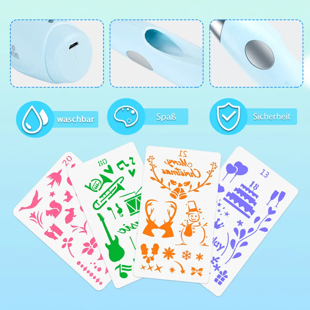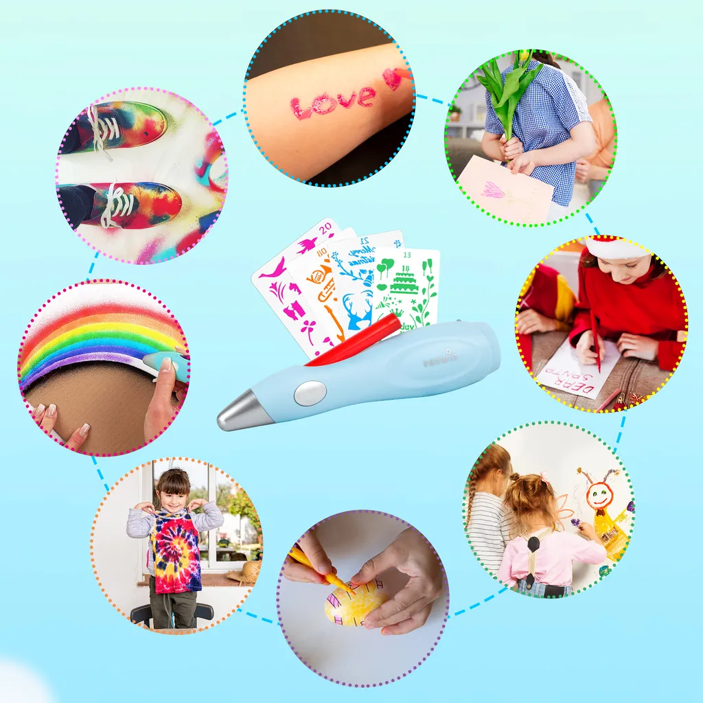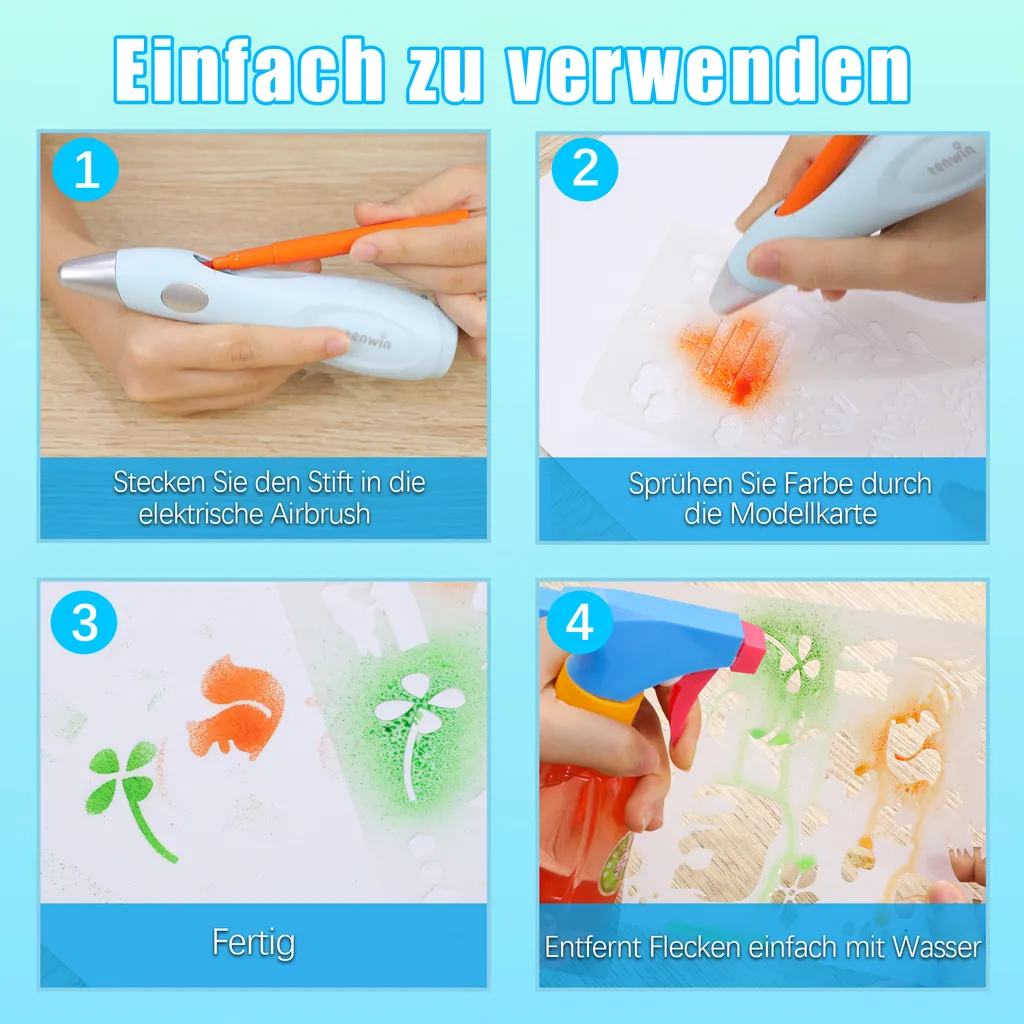Schreibe die erste Rezension für „Speed Spray Kunst Elektrische Airbrush Für Kinder Mit 12 Filzstiften & 4 Schablonen,Wasserstifte Waschbar Ungiftig, Airbrush Fun Farben Sprühen Für Kinder (Blau)“ Antwort abbrechen