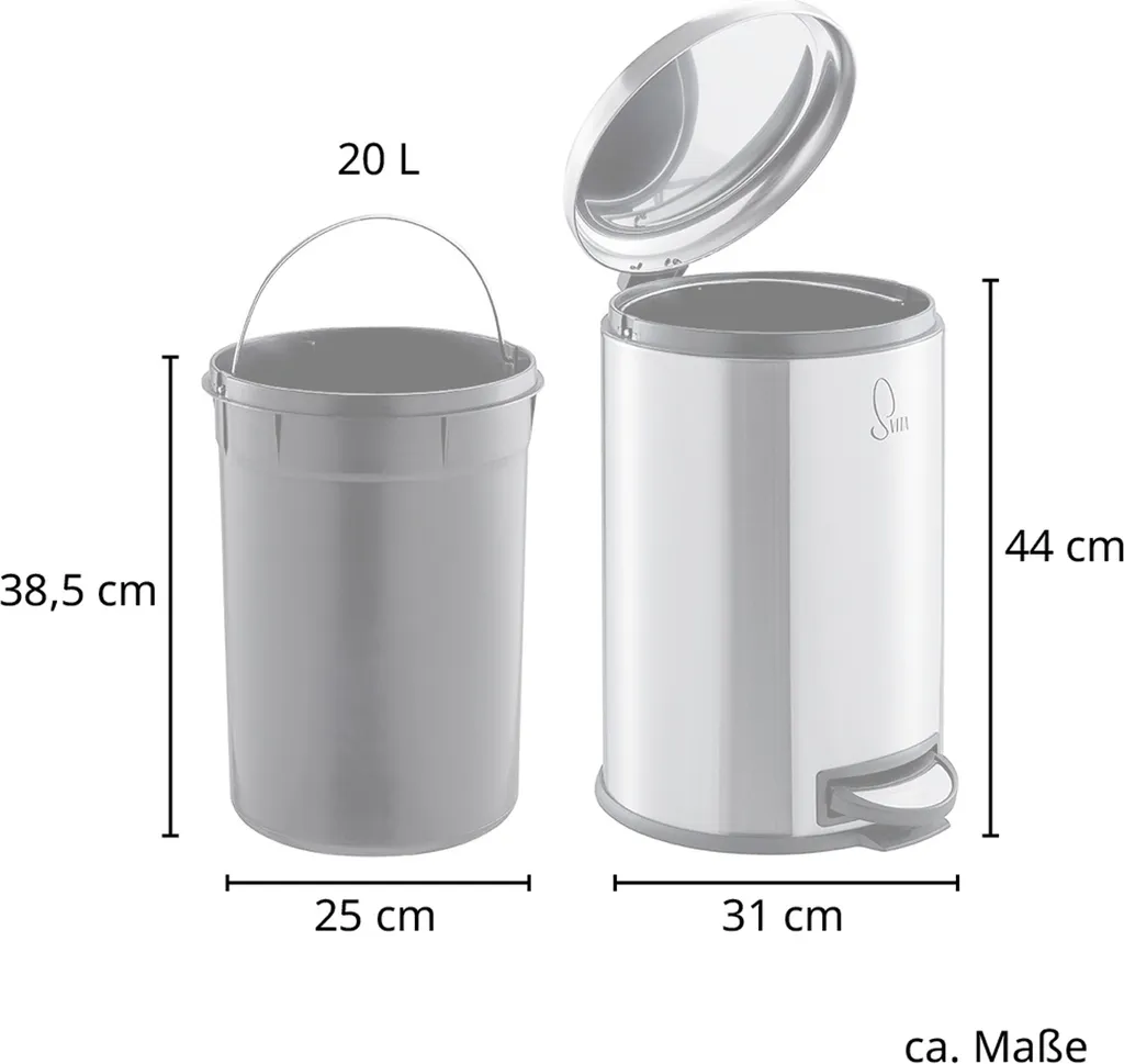 SVITA TQ30 Mülleimer Weiß 30L Treteimer Abfallbehälter Softclose Deckel Mit Inneneimer Edelstahl