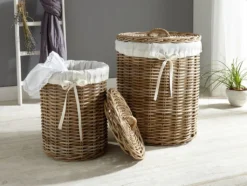 Wäschekorb Rattan Im 2er Set, Maße Ca. Ø 35 X 45 Cm, Ø 45 X 55 Cm