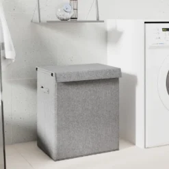 VidaXL Faltbarer Wäschekorb Grau 51×34,5×59 Cm Leinenimitat Stoff