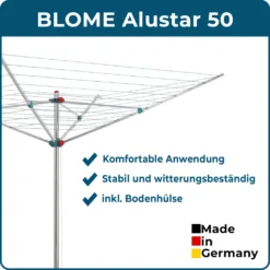 Blome Wäschespinne Alustar 50 – Wäscheständer Inkl. Bodenhülse Zum Eindrehen, Germany