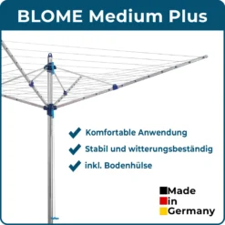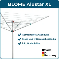 BLOME Wäschespinne Alustar XL – Wäscheständer Inkl. Bodenhülse Zum Einbetonieren, Germany