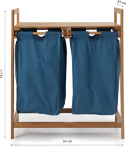 Lumaland Wäschekorb Aus Bambus, Mit 2 Ausziehbaren Wäschesäcken, Ca. 73 X 64 X 33 Cm Blau