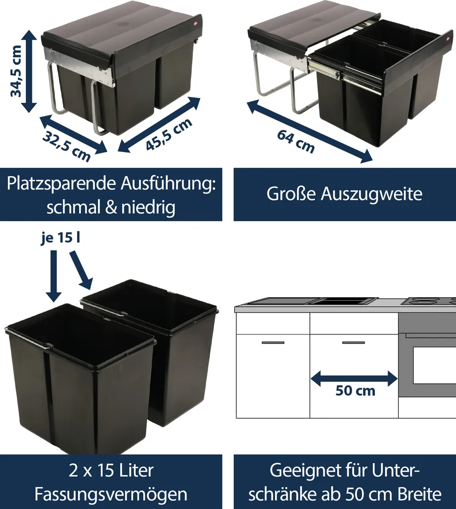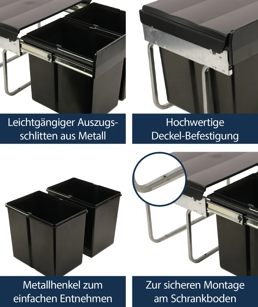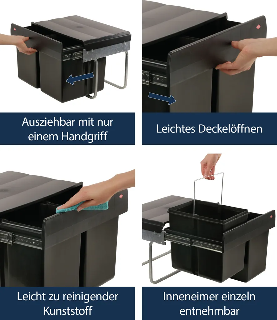 Schreibe die erste Rezension für „Wesco Niedriger Mülleimer Küche Ausziehbar | 2 X 15 L Einbaumülleimer Mit Schienengestell | Abfallsystem | Abfallsammler | Trennsystem | Bodenmontage | Kunststoff Schwarz | 28015 0“ Antwort abbrechen